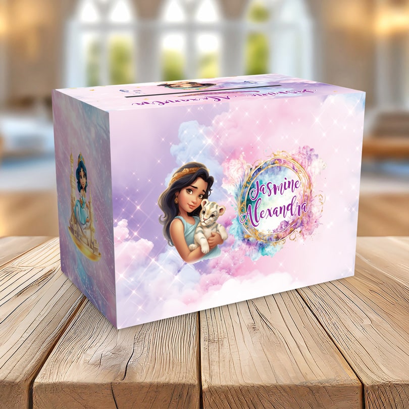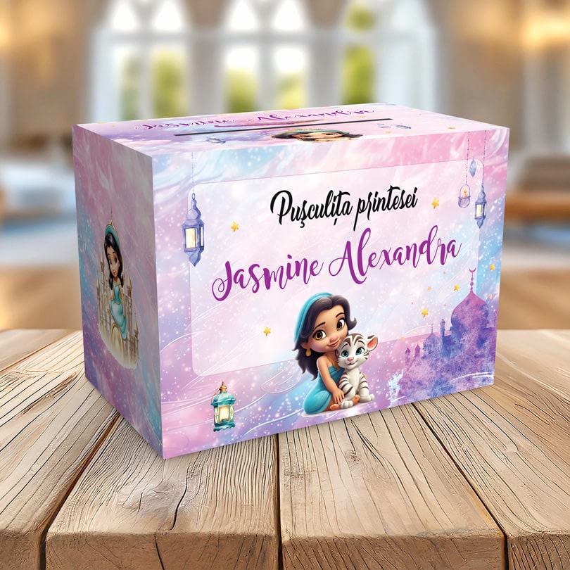 Cutie pentru plicuri de bani botez Prinţesa Jasmine, carton fotografic 300g, 33x23x23cm