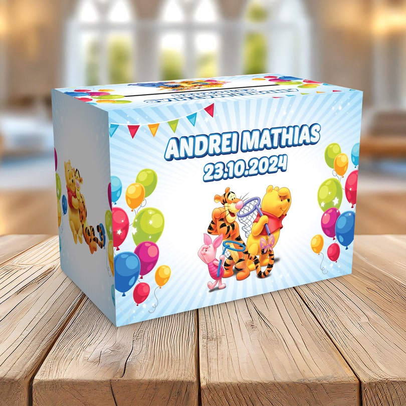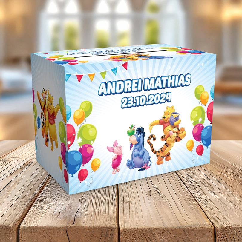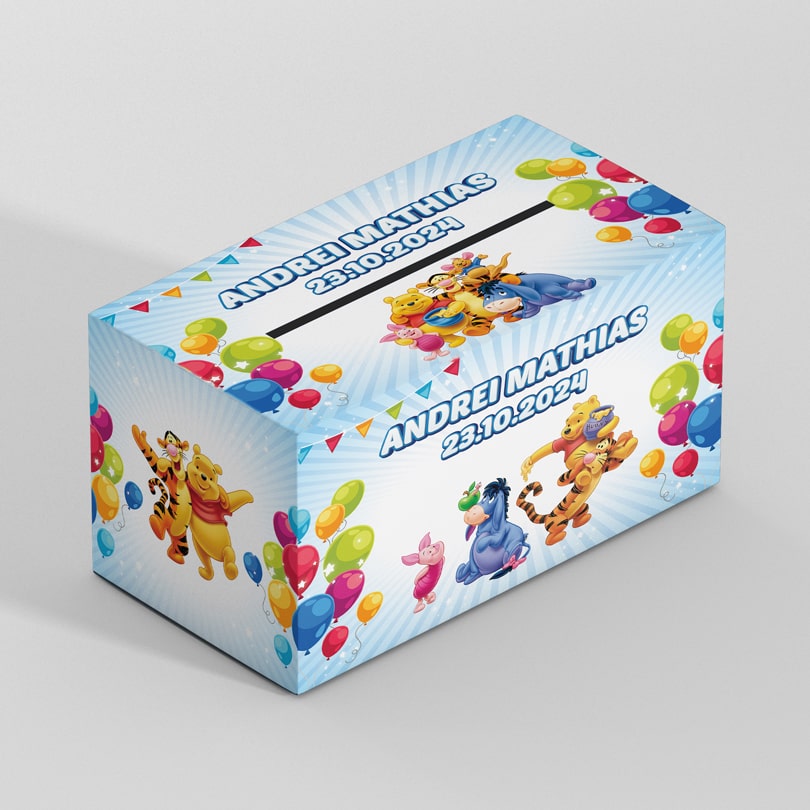 Cutie plicuri bani Winnie The Pooh, model baloane, carton fotografic 300g, 33x23x23cm #3