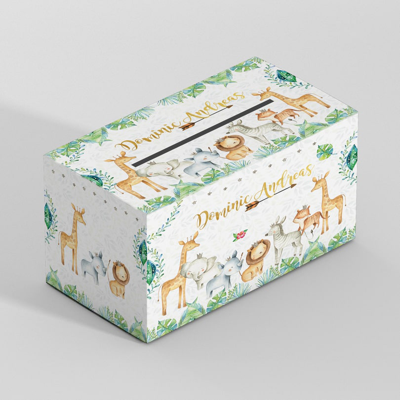 Cutie plicuri botez Safari personalizată cu nume şi mesaj, 33x23x23cm, carton fotografic 300g/m² #3