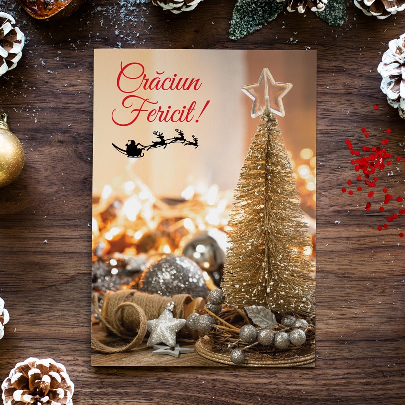 Felicitari de Craciun, 12x17cm, carton lucios fotografic, 300g/m², plic inclus ★ Model 10