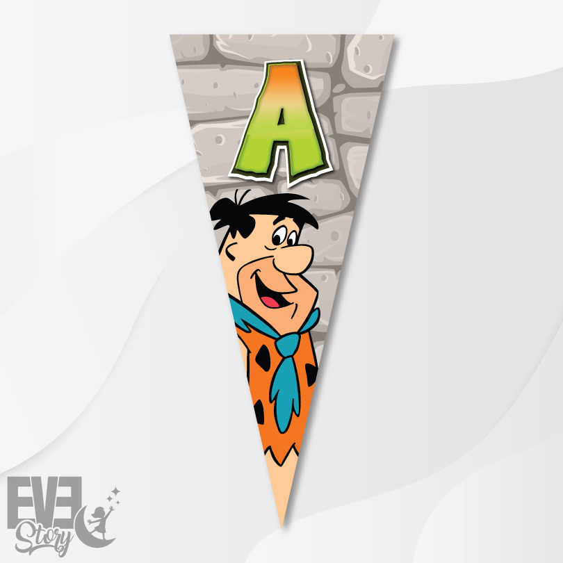 Ghirlandă Flintstones, formă triunghi, 28x13cm, Carton Fotografic Premium 240g, personalizată