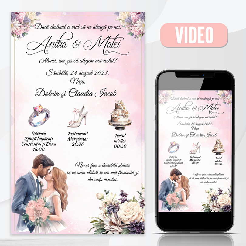 Invitatie digitala nunta cu Flori şi Miri, cu 3 poze, livrare rapidă