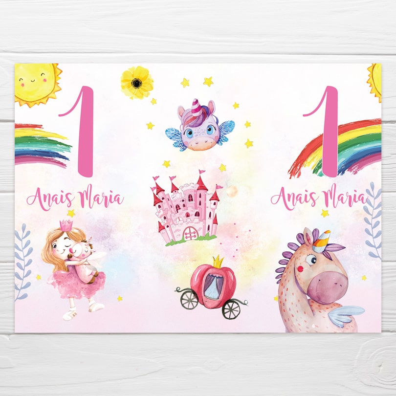 Numere de masă cu Prinţesa Unicorn pentru botez, 20x29cm, carton lucios 240g, multicolor