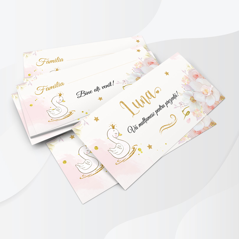 Plicuri de bani Mica Printesa cu flori, 20x9cm, culoare roz si auriu, carton lucios 240g/m², folosit si ca place card #2