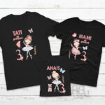 Tricouri Bluey şi Bingo, set culoare neagră, rezistent la spălări, bumbac 100%, Regular Fit