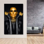 Tablouri pentru salon, Portret de femeie, culori auriu și negru, canvas Premium 280g #4