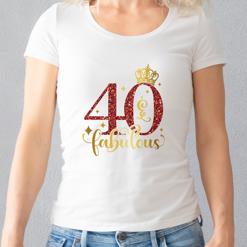 Tricou 40 ani femei – 40 & Fabulous Red Glitter rezistent la spălări, regular fit, culoare negru/alb, bumbac 100%