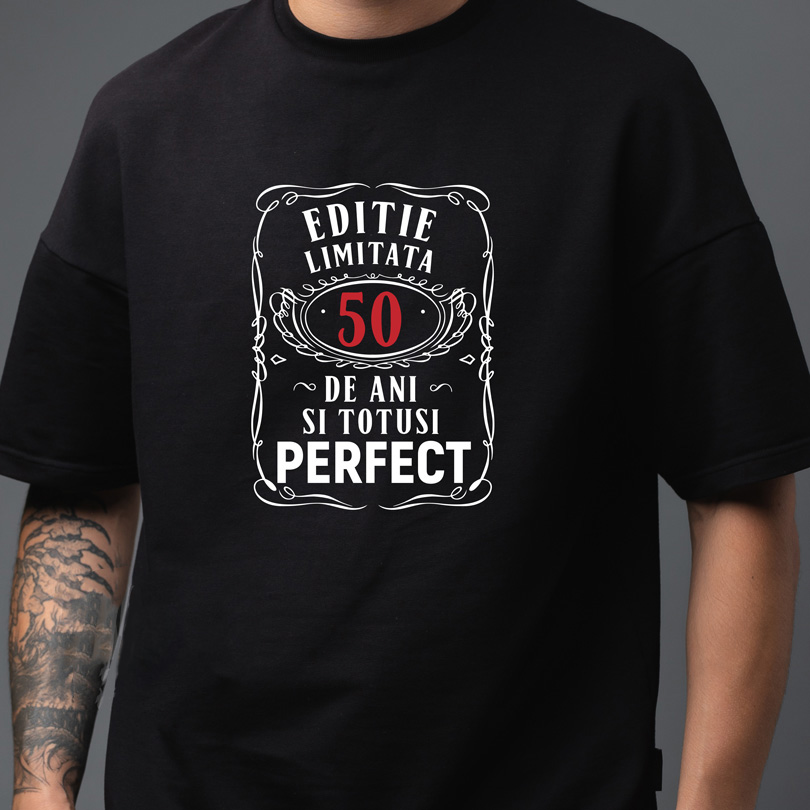 Tricou 50 ani Ediţie Limitată şi totuşi Perfect, rezistent la spălări, Bumbac 100%, Regular fit, culoare alb/negru
