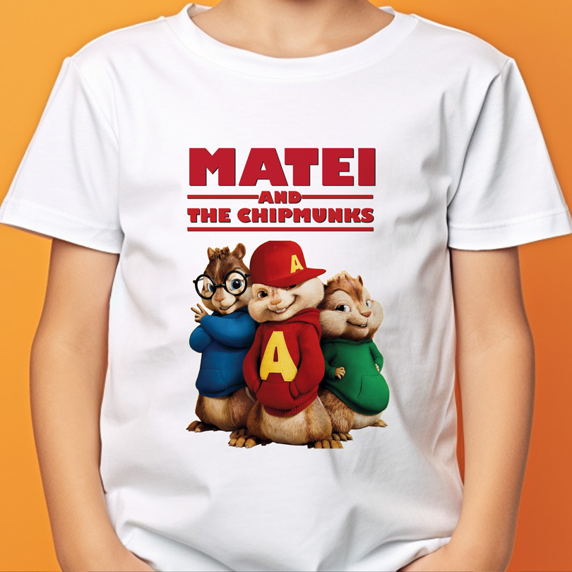 Tricou Alvin şi veveriţele personalizat pentru copii, regular fit, bumbac 100%, culoare alb/negru