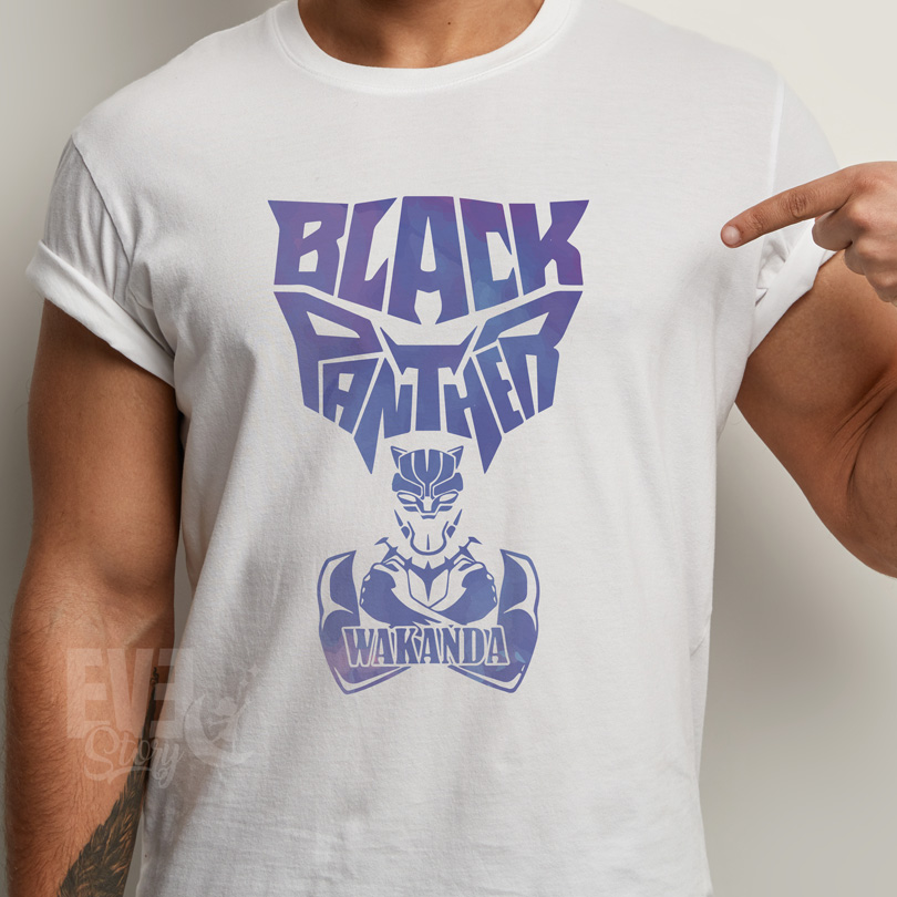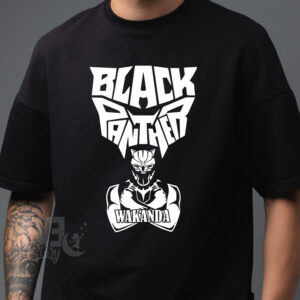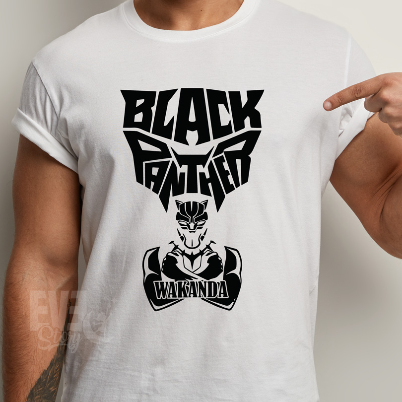 Tricou Black Panther Wakanda, rezistent la spălări, bumbac 100%, regular fit, culoare alb/negru