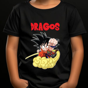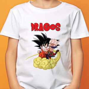 Tricou Goku personalizat cu nume pentru copii, Dragon Ball Z, bumbac 100%, imprimeu rezistent, culoare alb/negru