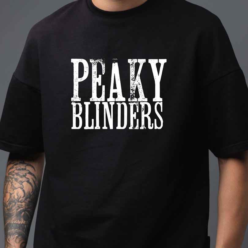 Tricou Peaky Blinders, Bumbac 100%, rezistent la spălări, Regular fit, culoare alb/negru